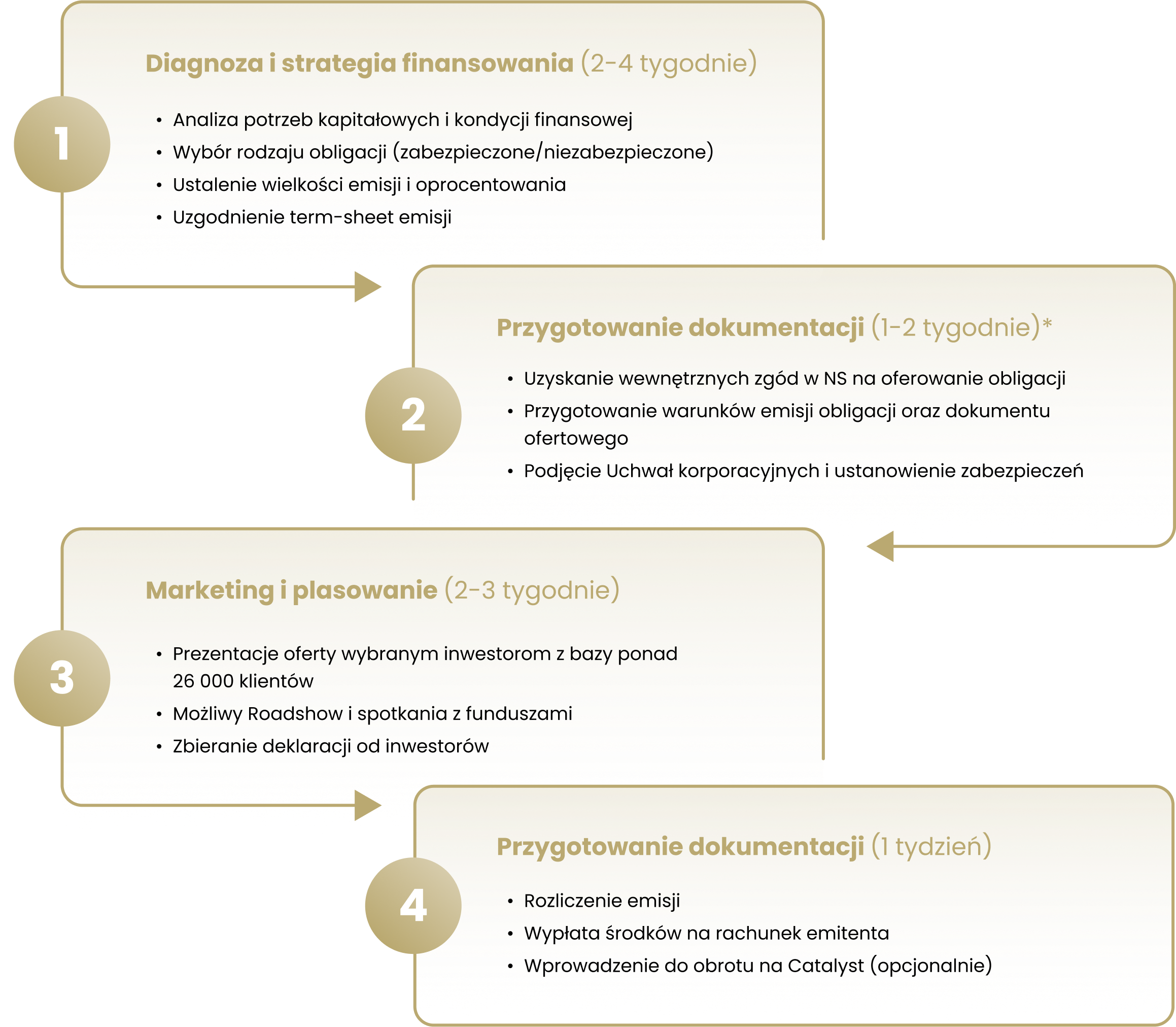 * nie dotyczy postepowania prospektowego, które może trwać od 3 do 9 miesięcy, ale daje możliwość oferowania obligacji przez okres 12 miesięcy od dnia zatwierdzenia prospektu przez KNF. Pozwala to realizować większe wolumeny emisji i szerszy dostęp do inwestorów detalicznych.